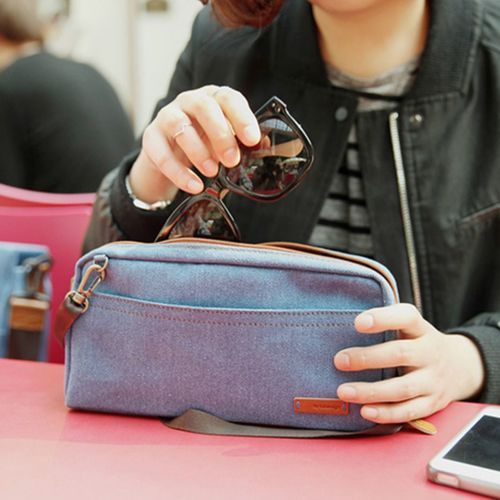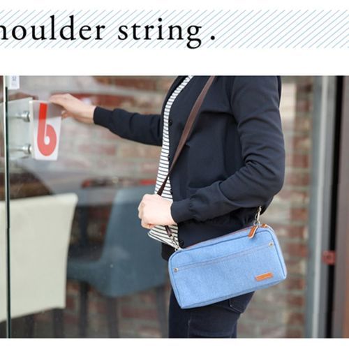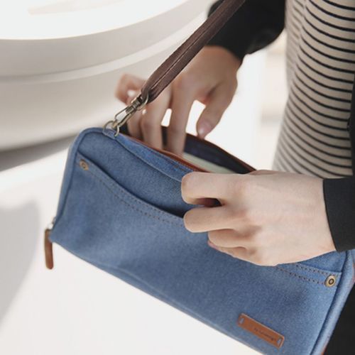 The Blue Jean Clutch Bag is a super cute and useful clutch bag! Blue Jean Clutch Bag is a double zipper bag that has 2 compartments inside and 1 open pocket on the outside. The partition inside divides the two pockets for you to separate items. There is also a pen holder and 4 card slots on the inner compartment. The open pocket on the outside is spacious enough to store cell phone, receipts, pens, lipstick and so much more! There is small stretch band in the corner of this bag to stick in small flashlight or lipstick. Each purchase comes with a shoulder strap. Carry this pouch with you when you go out to the bank, supermarket or cafe! Please check out the photos to learn more!