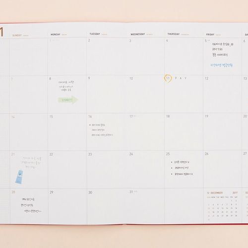 Monthly Plan has calendar layout, and there is a leftmost vertical column for writing weekly plans and short notes. Plus! this planner comes with 1 Pocket sticker so that you can stick them inside the cover to store memos, stickers, receipts, photos and so on. Please check out the photos to learn more!
