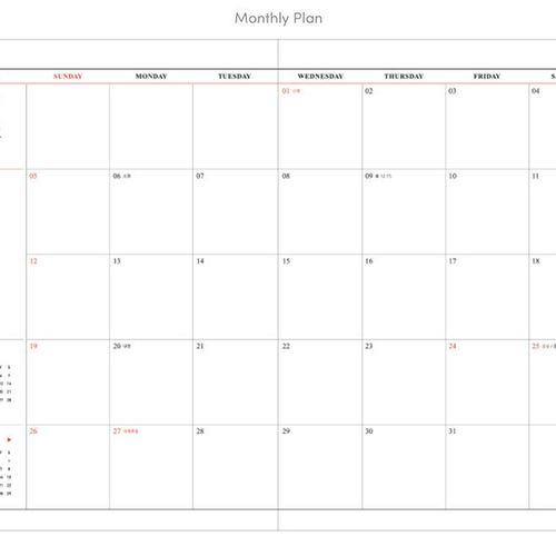 Please note, some Korean holidays are marked on the yearly and monthly pages. However you can always write your personal holidays in!